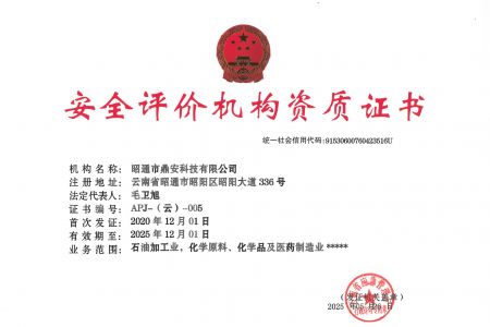 2003年11月10日,昭通市鼎安科技有限公司成立,初始主要從事第三方安全工程技術(shù)服務(wù),經(jīng)多年運(yùn)營(yíng),發(fā)展為多專業(yè)綜合科技平臺(tái),為社會(huì)提供多種專業(yè)技術(shù)服務(wù)工作。 現(xiàn)公司注冊(cè)資金為1200萬元,公司法定代表人:毛衛(wèi)旭。公司主要業(yè)務(wù):安全評(píng)價(jià)、安全標(biāo)準(zhǔn)化評(píng)審、安全工程技術(shù)服務(wù);環(huán)境監(jiān)測(cè)、職業(yè)衛(wèi)生檢測(cè)、檢驗(yàn);法律訴訟及非訴訟服務(wù);司法鑒定、固定資產(chǎn)投資項(xiàng)目節(jié)能服務(wù);工程咨詢;工程測(cè)量測(cè)繪;安全教育培訓(xùn)等。是安全生產(chǎn)服務(wù)、安全教育培訓(xùn)機(jī)構(gòu),也是環(huán)境監(jiān)測(cè)和職業(yè)衛(wèi)生服務(wù)機(jī)構(gòu),同時(shí)也是綜合的檢測(cè)檢驗(yàn)、綜合科技平臺(tái)服務(wù)機(jī)構(gòu)。多年來為公、檢、法、司、軍、警、海關(guān)、仲裁、安監(jiān)、工礦商貿(mào)企業(yè)、社會(huì)團(tuán)體及個(gè)人提供多專業(yè)技術(shù)服務(wù)。